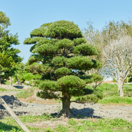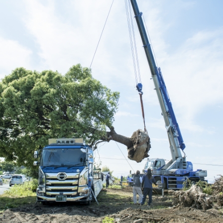 弊社には細い苗木ではなく歴史を刻んだ銘木やサステイナブル事業で引き取られた素敵な樹木が1000~2000本以上あります。